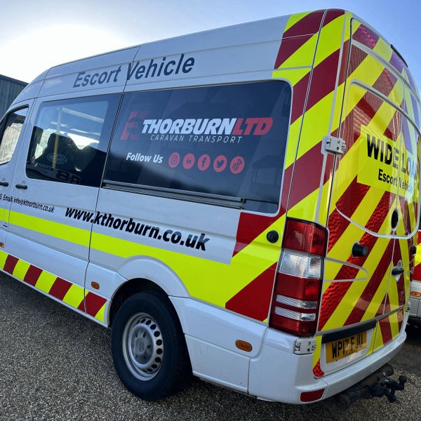 We provided a full rebrand for KThorburn Ltd, including a new logo and vehicle branding. Spanning their every increasing HGV Fleet, we produced and installed wraps, custom templated reflective packs and in addition complete bespoke chapter 8 safety graphics, for their fleet of LCV escort vehicles.